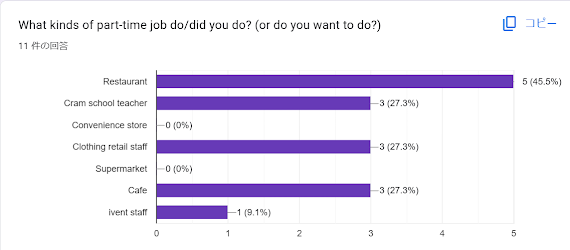 (Summary) Students answered 9 questions about part-time job.